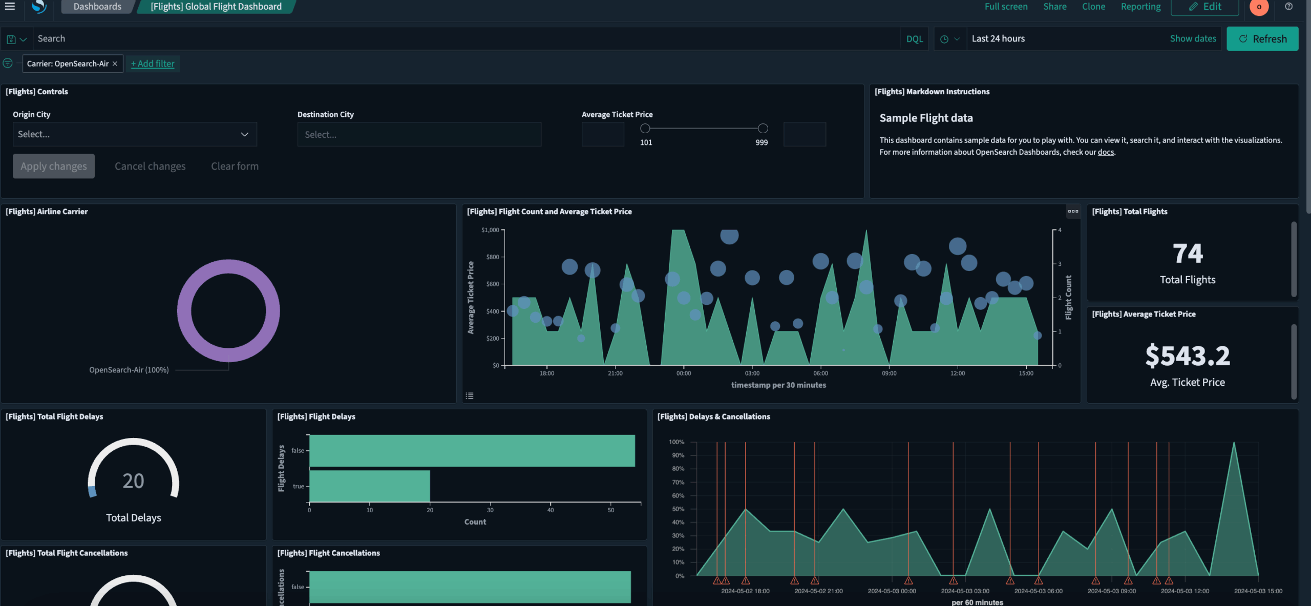 OpenSearch Dashboards provides dynamic, highly scalable dashboards with a wide range of visualizations that operate with minimal latency.