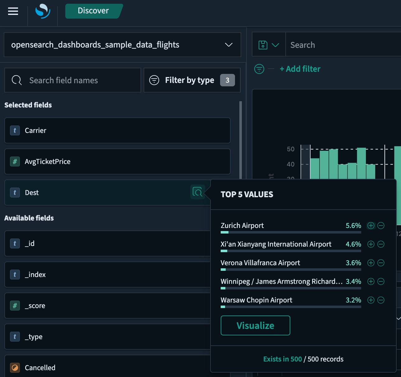 | Explore and query data | Analyze your data in OpenSearch and visualize key metrics using the Discover application in OpenSearch Dashboards. |